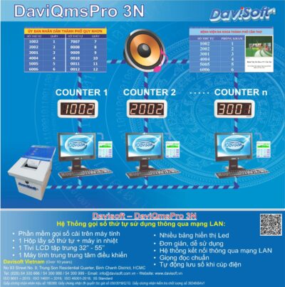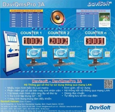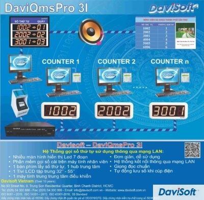 Model: DaviQmsPro 3A Hệ Thống gọi số thứ tự sử dụng thông qua mạng LAN