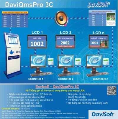 Model: DaviQmsPro 3K Hệ Thống gọi số thứ tự sử dụng thông qua mạng LAN: