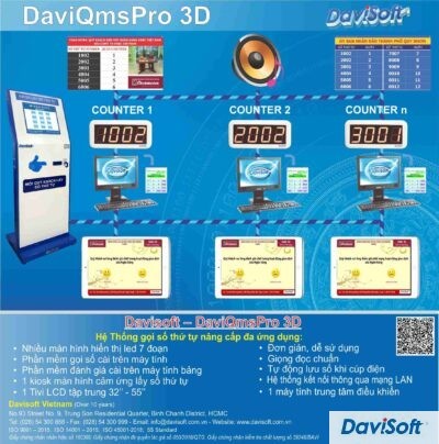 Model: DaviQmsPro 3D Hệ Thống gọi số thứ tự nâng cấp đa ứng dụng:
