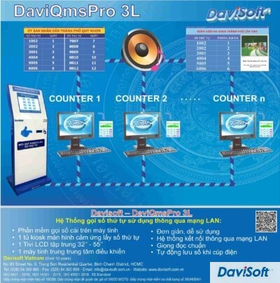 Model: DaviQmsPro 3L Hệ Thống gọi số thứ tự sử dụng thông qua mạng LAN: