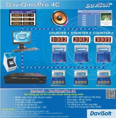 Model: DaviQmsPro 4C Hệ thống gọi số thứ tự tiêu chuẩn thông dụng nhất