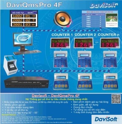 Model: DaviQmsPro 4F Hệ thống gọi số thứ tự tiêu chuẩn thông dụng nhất