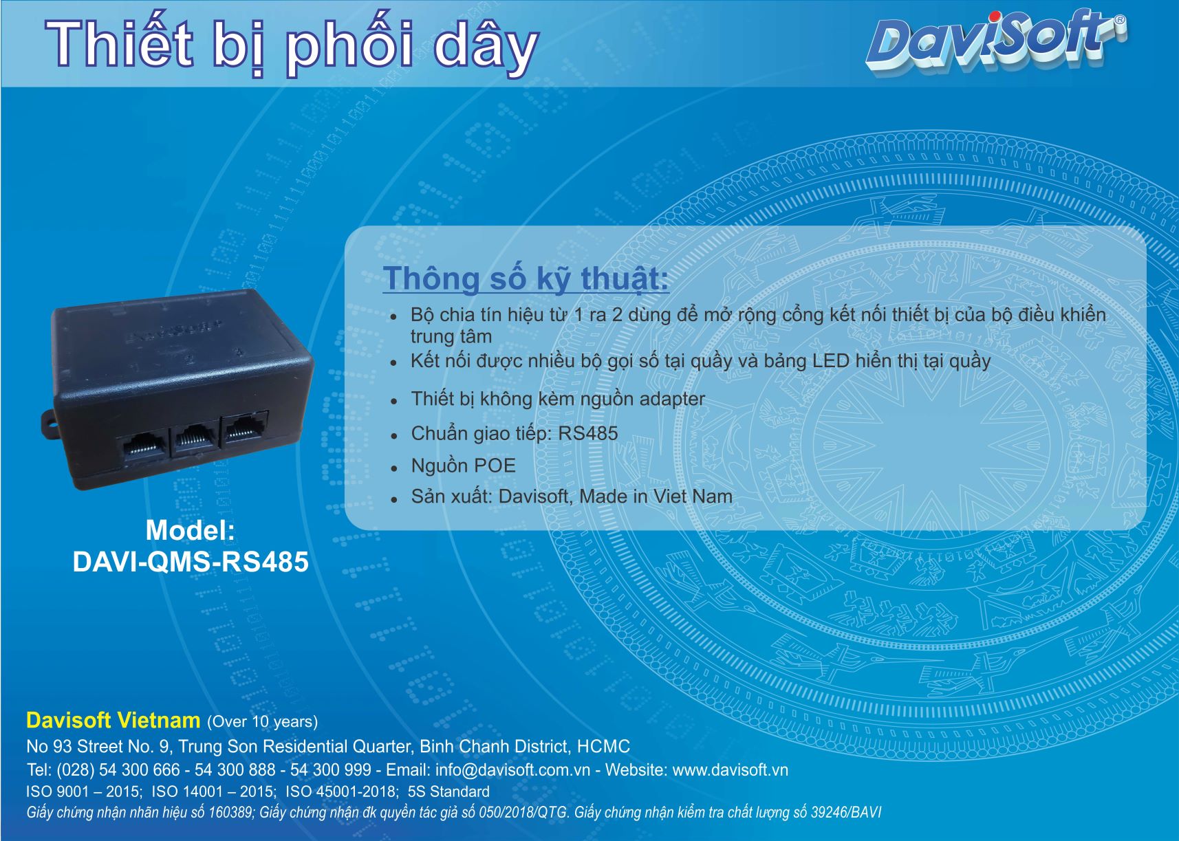 – Thiết bị giao tiếp truyền tín hiệu RS485 – Thiết bị không kèm nguồn adapter |